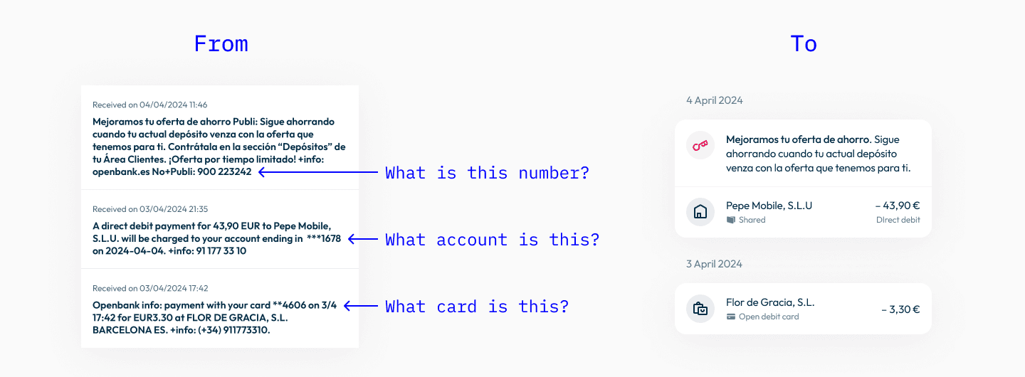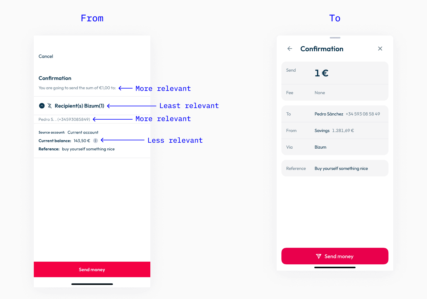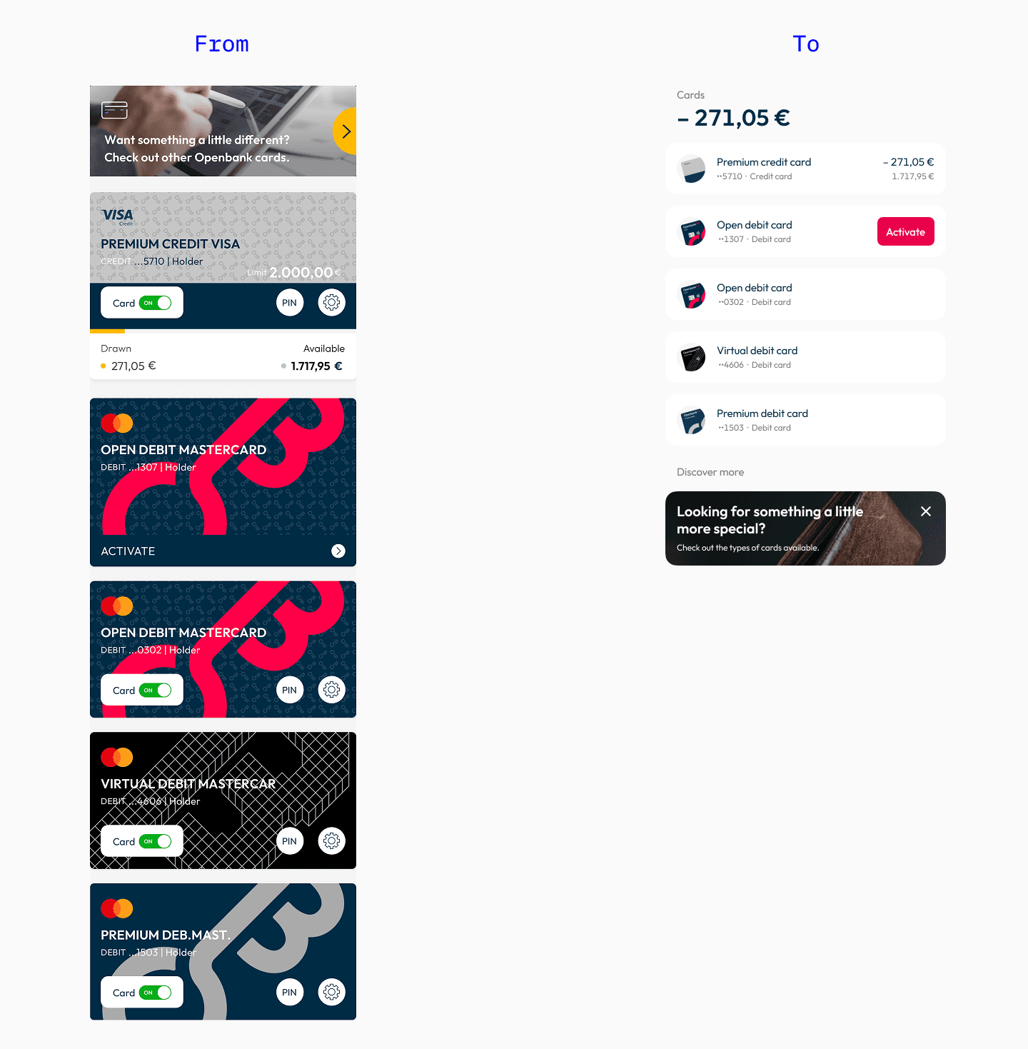 After a thorough benchmark and analysis of finance apps, I mapped issues in Openbank’s existing app and explored how to resolve them through the previously defined principles of consistency, clarity, and concise communication.
